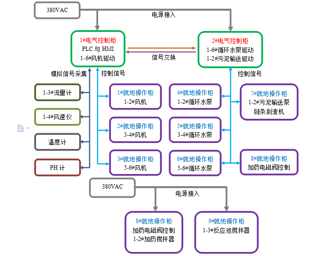 江西賽維LDK太陽能高科技有限公司廢氣治理(80000M3/H)工程與(50000M3/H)工程自動化控制系統完全相同,由綜合控制柜和設備就地操作柜及現場儀表組成。綜合控制柜內設置一套PLC(可編程序控制器)和HMI(觸摸屏)組成自動化監控系統,按系統工藝流程實現無人值守全自動化運行。