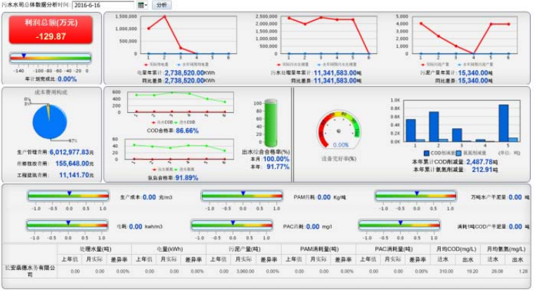 建立以生產運營管理為核心的大數據平臺,自動采集的各廠、站、一體化設備運行數據,自動生成運行記錄報表,輔助管理者優化決策。展示方式:柱狀圖、餅狀圖、折線圖。分析應用:經濟運行報表、能耗監測報表、設備體檢報表等。