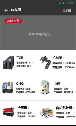 宏觀顯示:顯示整個生產線中所有設備設的運行、停機和故障狀態等;