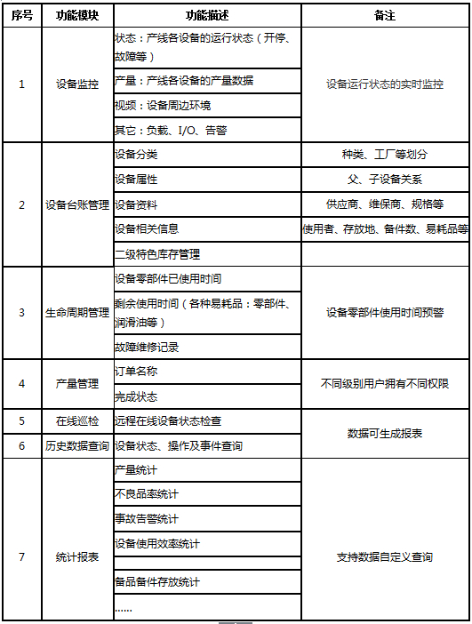 可以實現設備臺賬管理、遠程狀態監控、設備日常巡檢、歷史數據查詢、報警事故處理、產量數據分析等;